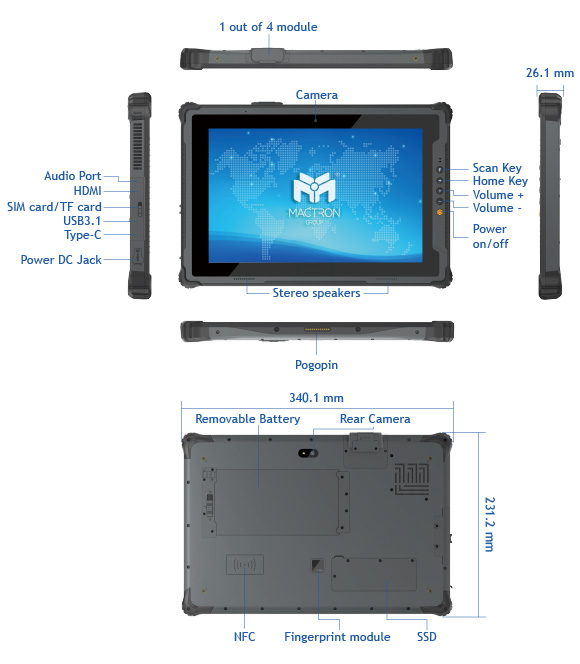 Barcode Scanner Module (Optional) NFC Module (Optional) Fingerprint Module |