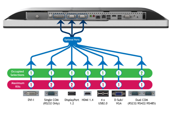 | 2 x DB9 COM (RS232 / RS422/ RS485) | 4 x USB 2.0 | |||