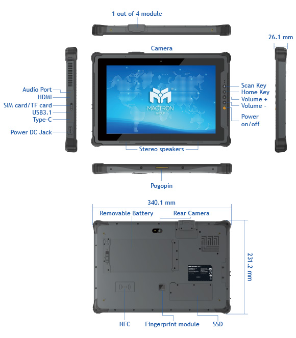 Barcode Scanner Module (Optional) NFC Module (Optional) Fingerprint Module |