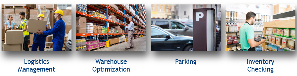 Logistics Management, Warehouse Optimization, Inventory Checking, Asset Management, Retail, Parking