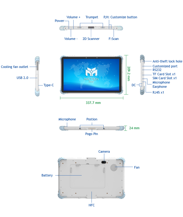 | Touch Panel | 10-points Capacitive multi-touch screen, support Stylus |